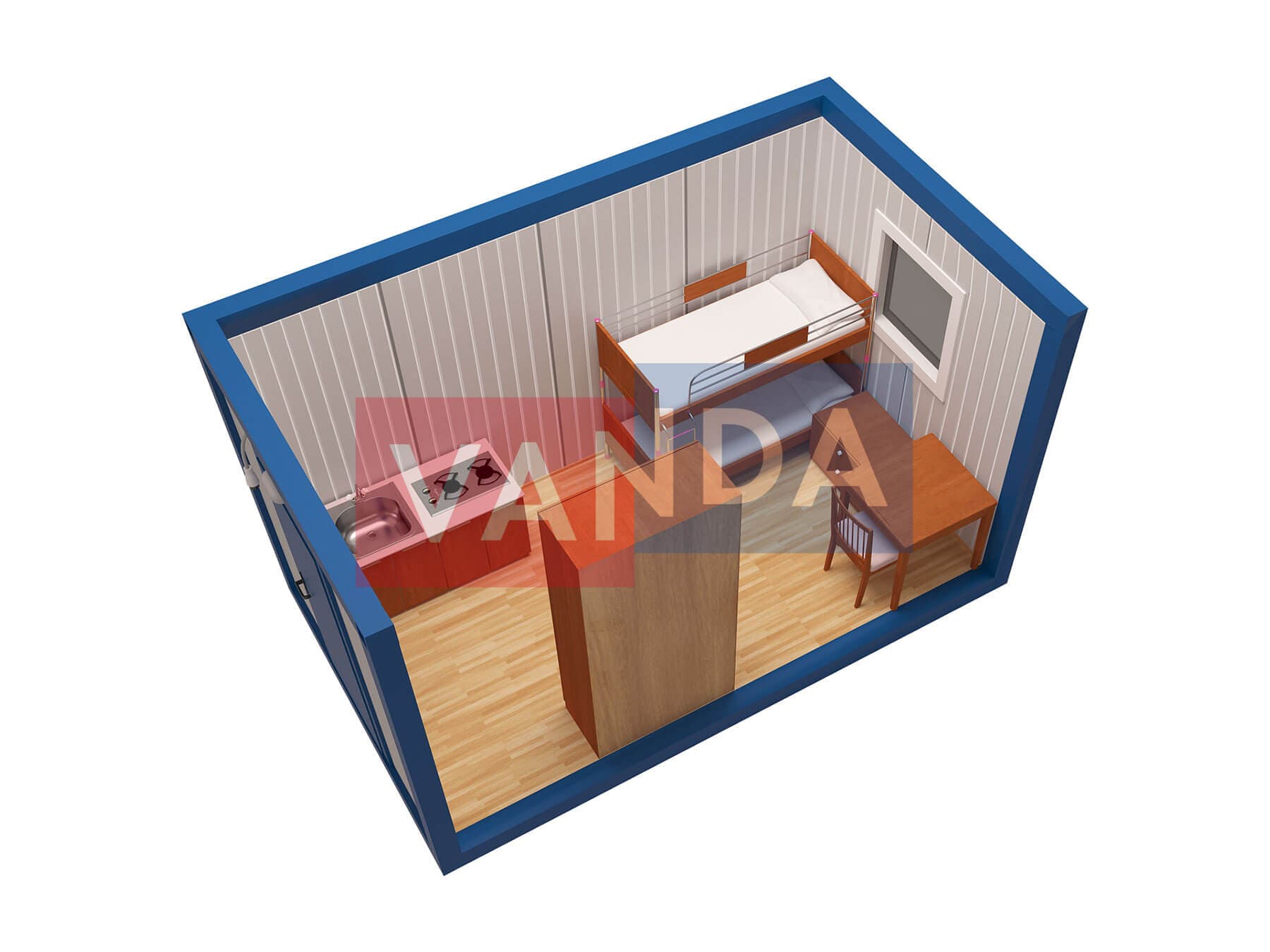 Металлическая бытовка без тамбура 5,85 x 2,4 - Вагонка деревянная