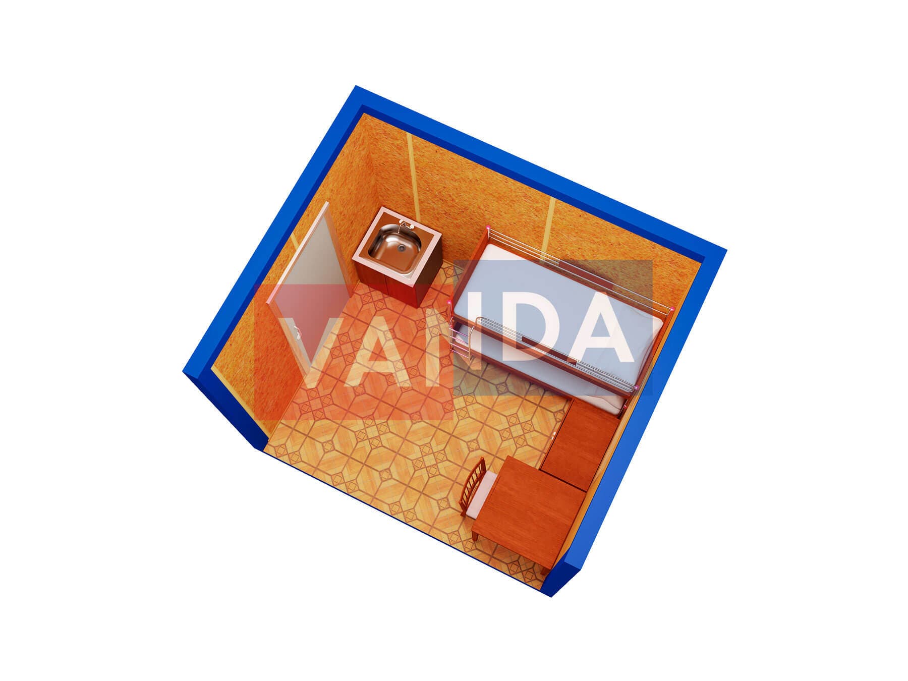 Металлическая бытовка без тамбура 5,85 x 2,4 - Оргалит ДВП